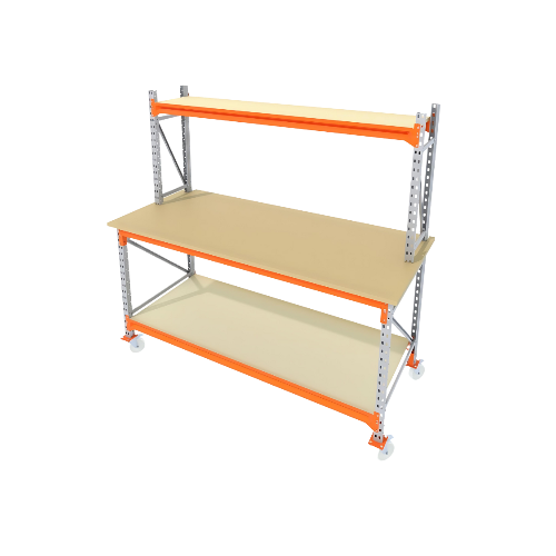 Werkbank op wielen - Dubbele opbouw - Galva - Alle afmetingen - 3 niveaus - Werkblad 25 mm